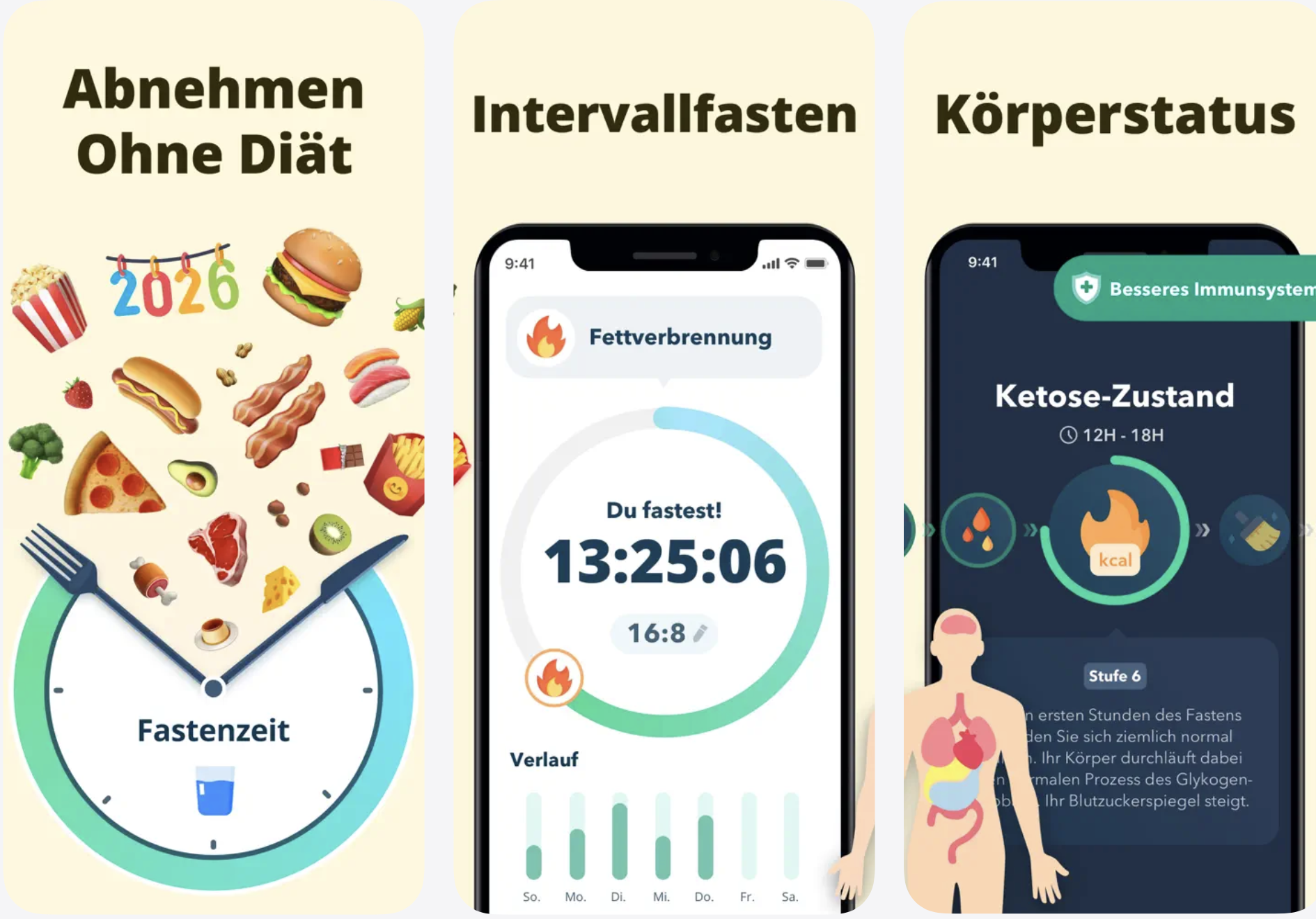 • Vorteile: Individuelle Fastenpläne und personalisierte Rezepte, die Heißhunger in der Fastenzeit verhindern, Fasten- und Wassertracker mit Erinnerungen, motivierende Gewicht-, Maße- und BMI-Statistiken, tägliche Coaching-Tipps, Motivation und Challenges, Anti-Jojo-Strategien und Abnehmbooster, ganzheitliche Tipps zu Ernährung, Bewegung, Schlaf und Geist, Home-Workout-Videos zur Fitness-Steigerung, wissenschaftlich fundiertes Fastenwissen, Speicherung der Daten in Apple Health, kostenlos nutzbar, Premium mit erweiterten Funktionen, ausgezeichnet mit dem Deutschen App-Award 2026 in der Kategorie "Fasten-Apps"